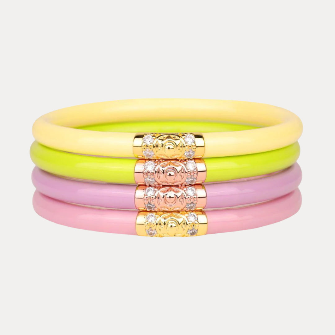 All Weather Bangles® serve as the cornerstone of our remarkable bracelet collection and is an essential starting point for your wristscape™ journey. No matter the color you choose, or the number of bangles you layer on, a BuDhaGirl stack is as one-of-a-kind as the person wearing it. What story will your stack tell?