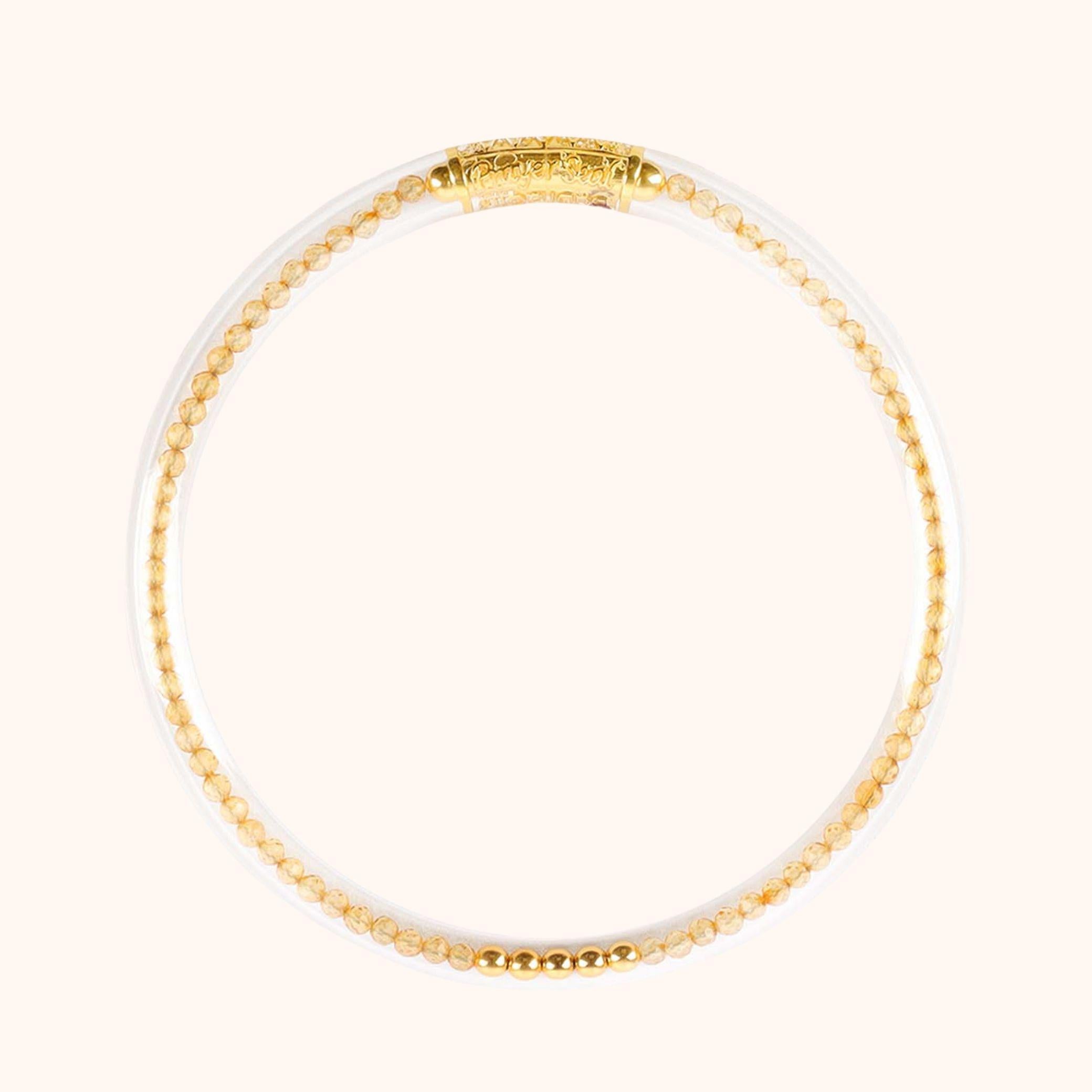 The Citrine Luxe AWB has a strand of natural 2mm Citrine totaling approximately 2.98 carats, the bangle is sealed with our Serenity Prayer Bead in 925 silver dipped in 18-carat gold.