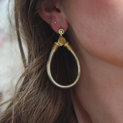 Each earring is crowned with our Logo-set bead cast in gold-plated brass, mirroring the finish of our All Weather Bangles.