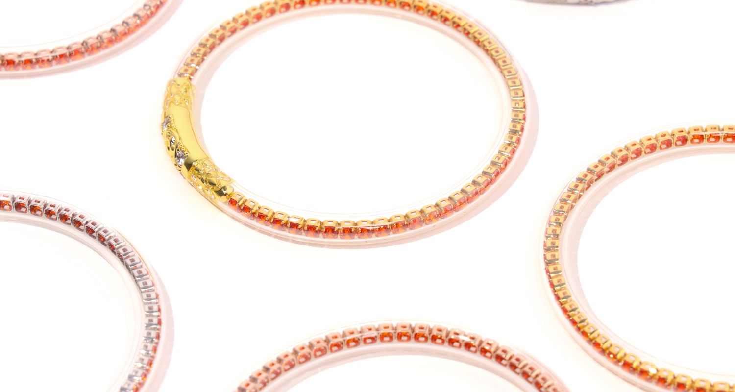 La più bella tonalità di arancio brillante è racchiusa nel nostro tubo cristallino, sigillato con la nostra firma Tre Regine in oro per catturare il sole, in oro bianco per catturare la luna e in oro rosa per catturare l'alba.