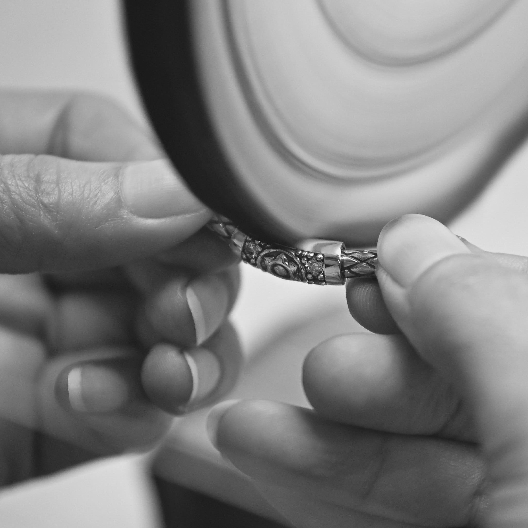 Before any All Weather Bangle® leaves our atelier, it must pass an exacting quality control process. Under magnification and precise lighting, each bangle is carefully inspected by trained eyes—every detail, every bead, every finish. Only those that meet our uncompromising standards of craftsmanship and beauty are chosen. This is more than quality assurance; it is a final gesture of respect for the ritual each bangle is meant to honor. Perfection is not the goal—it is the promise.