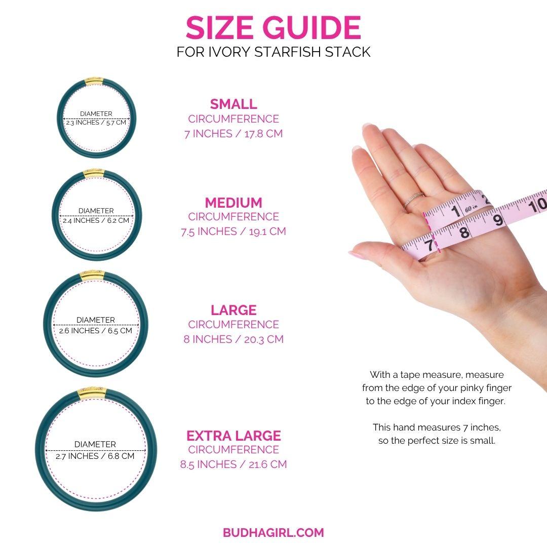 Ready to learn how to measure bangle size in inches? There are two ways that BuDhaGirl recommends measuring your knuckles for bangle bracelet sizes: with a tape measure or without. Whichever method you use, a fabulous fit for your All Weather Bangles is only a few quick steps away!